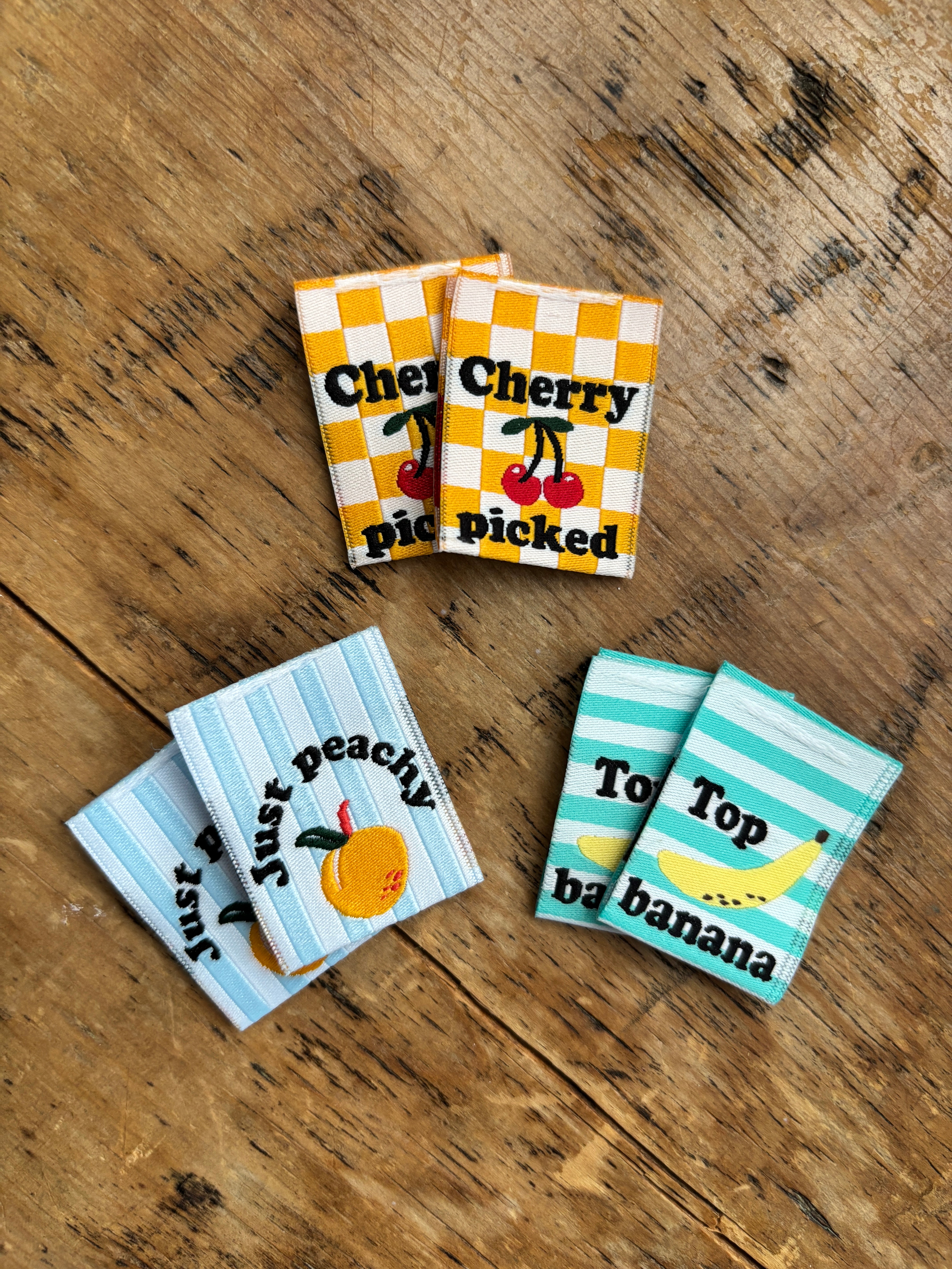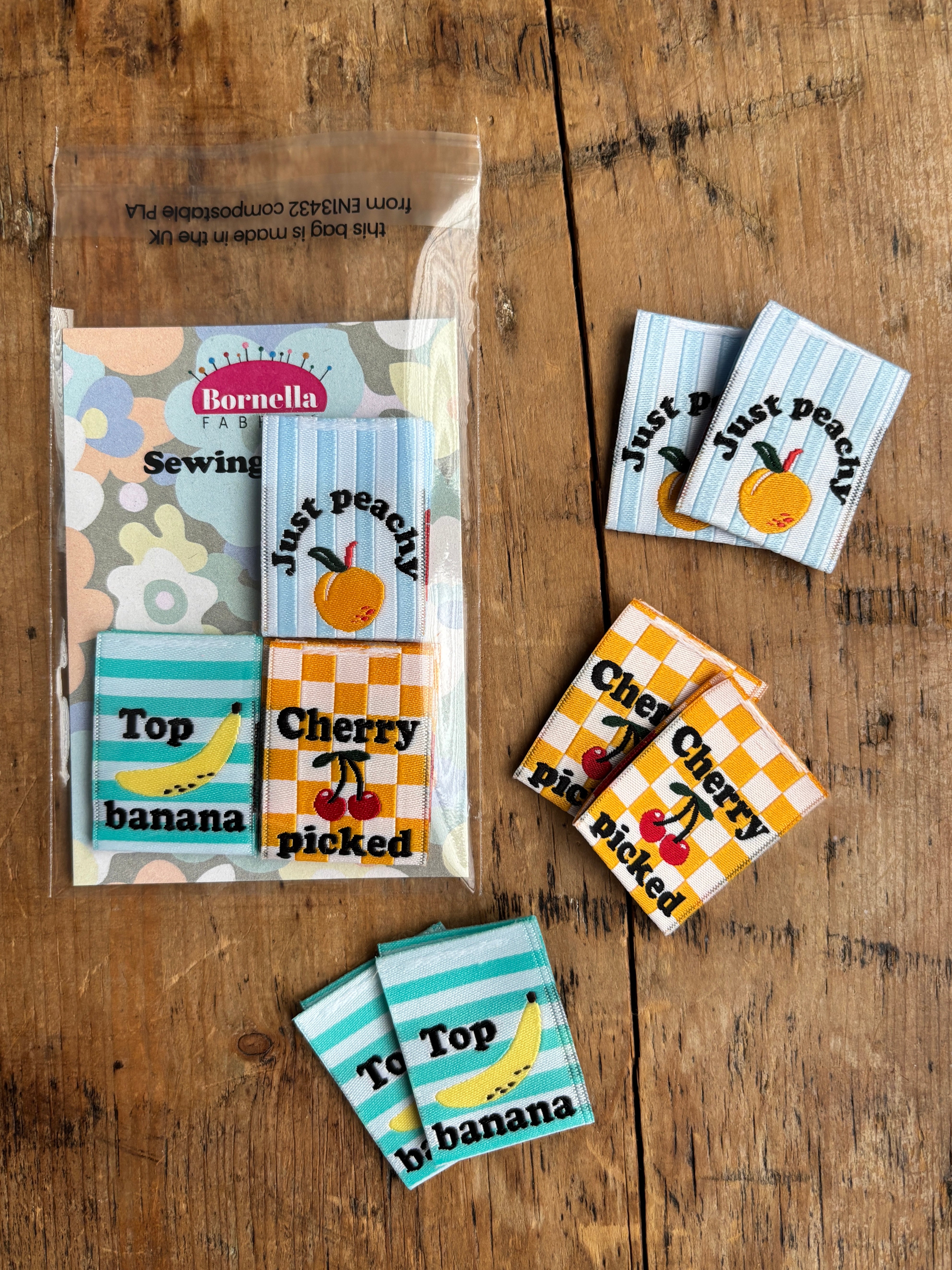 The Feeling Fruity label collection by Bornella Fabrics channels our inner picnic energy - who doesn't love a motivational fruit label in your me made?! Each pack contains six sew-in labels - two each of the following designs: