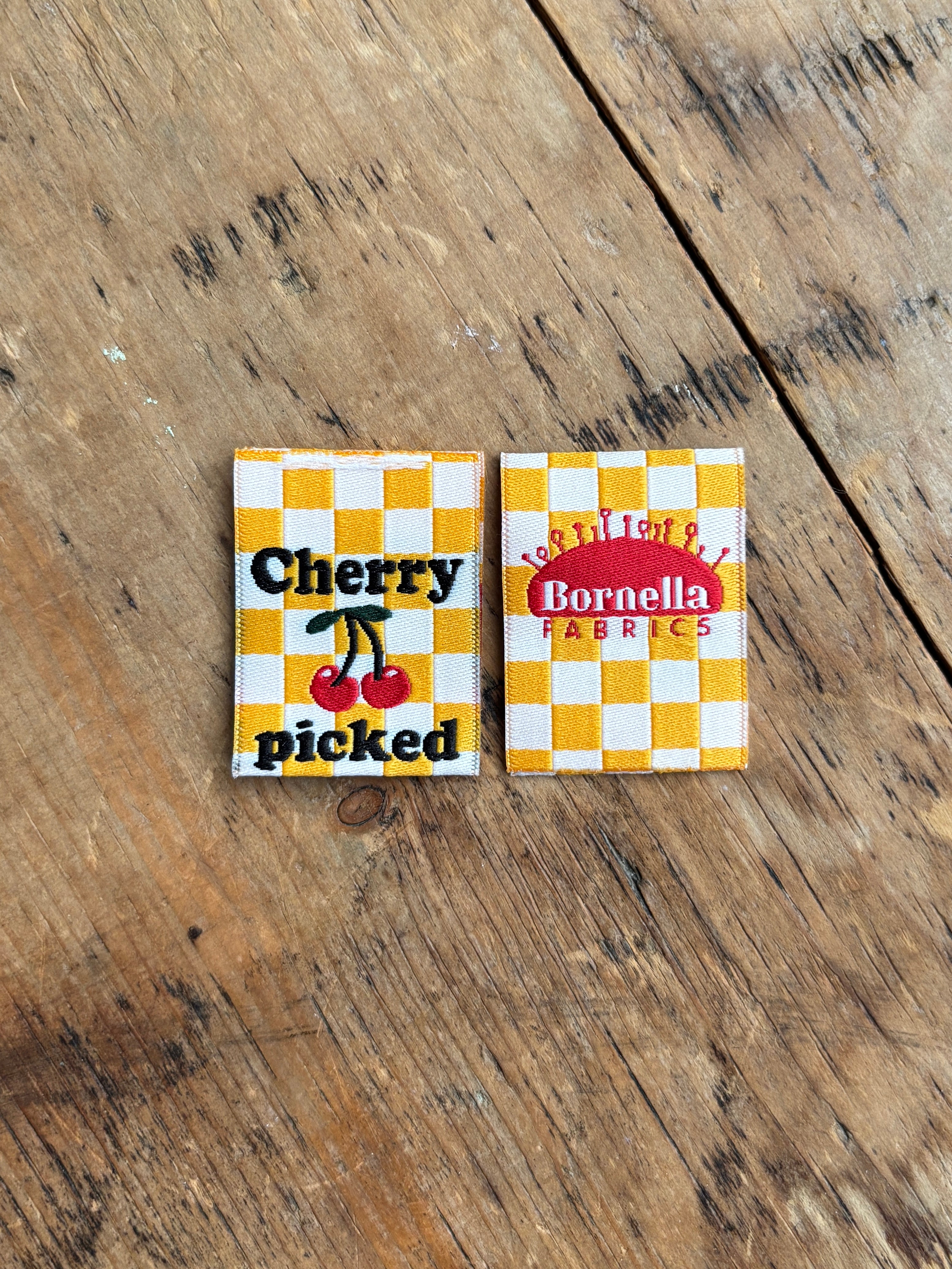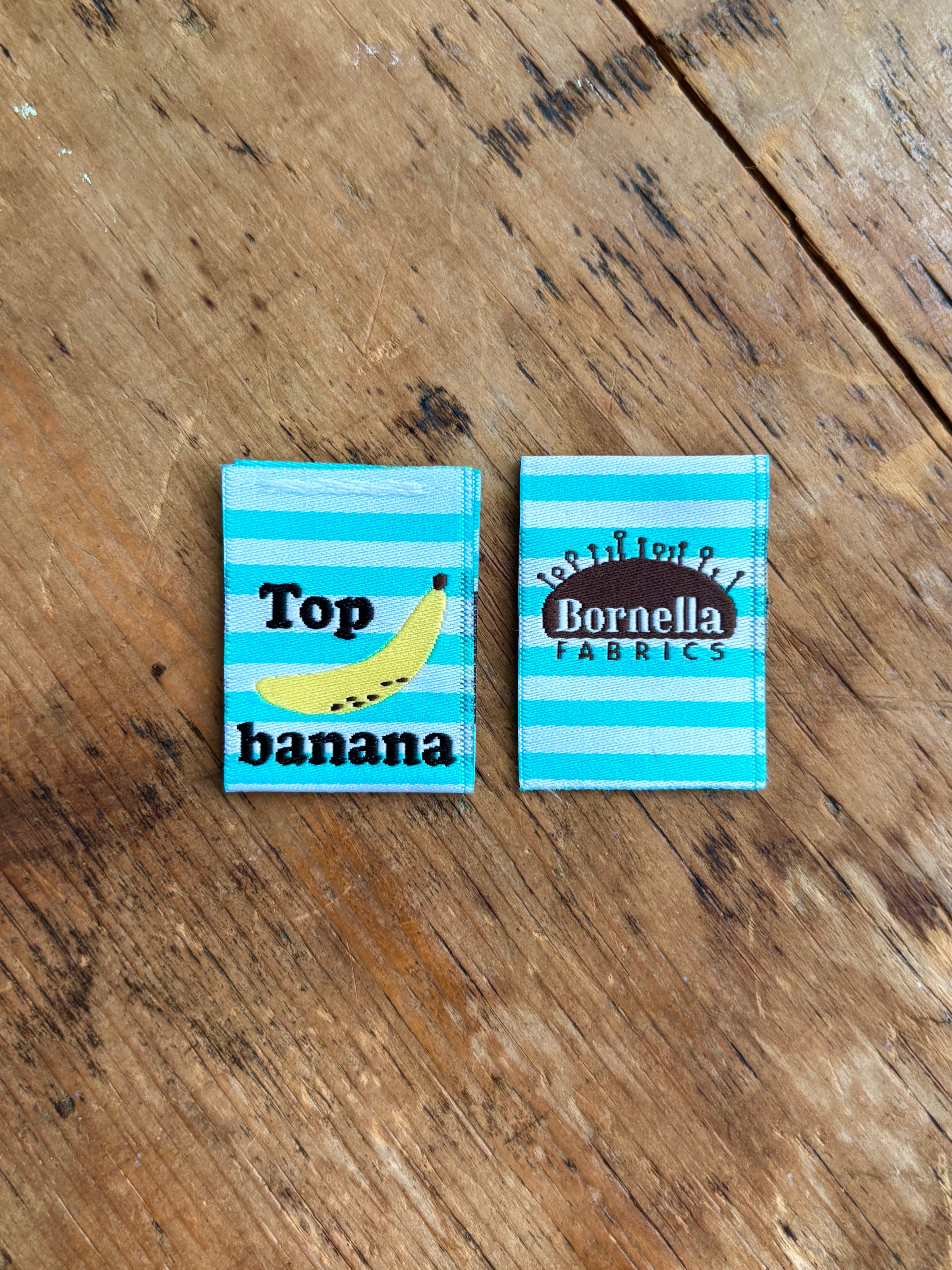 The labels are folded in half - the front features the design and the reverse has the Bornella Fabrics logo. The blank area at the top of the label is nice and big, so there's plenty of room to attach the label in your seam without it being too fiddly.