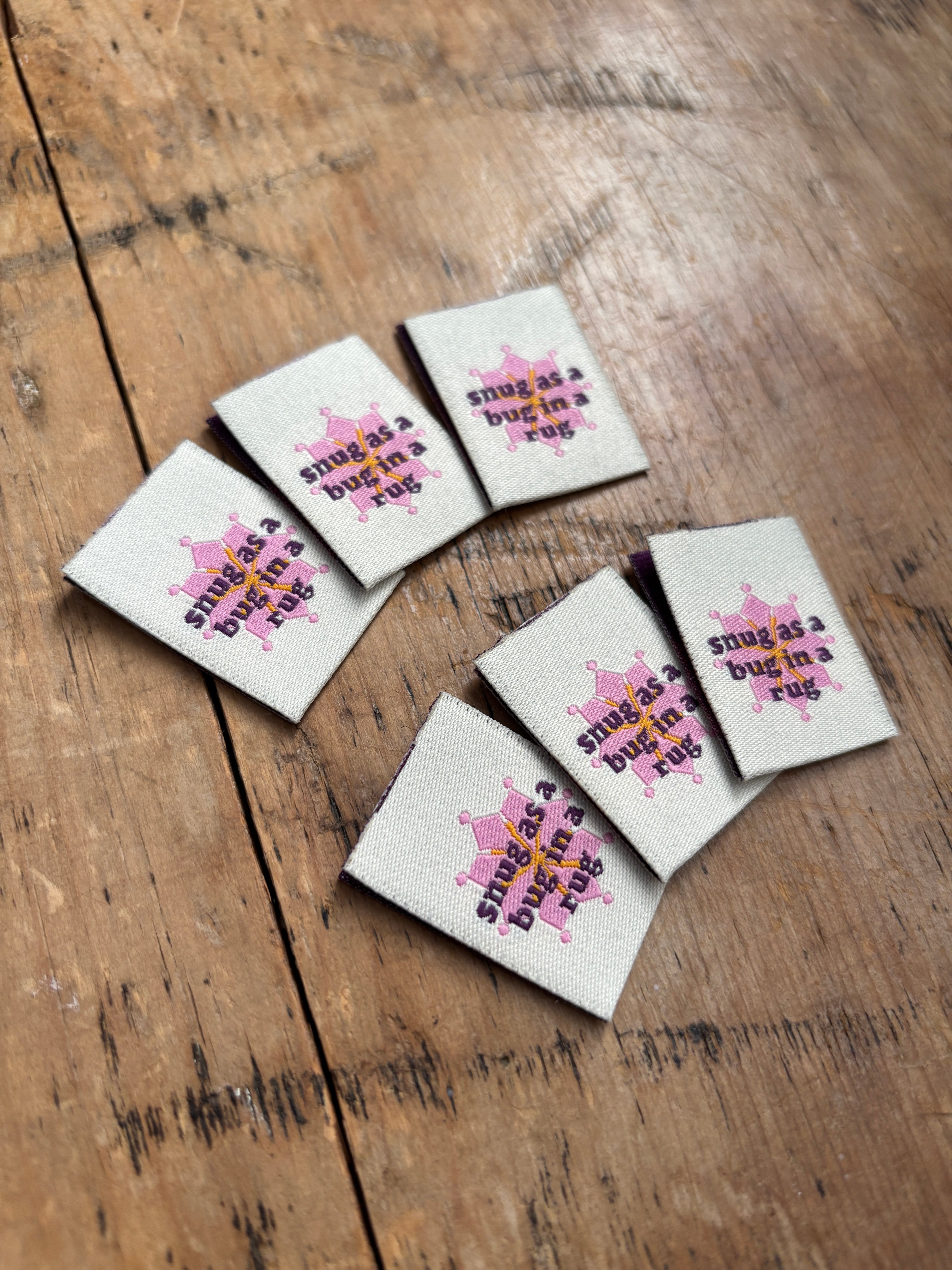 - Each pack contains 6 labels in the "Snug as a Bug in a Rug" design