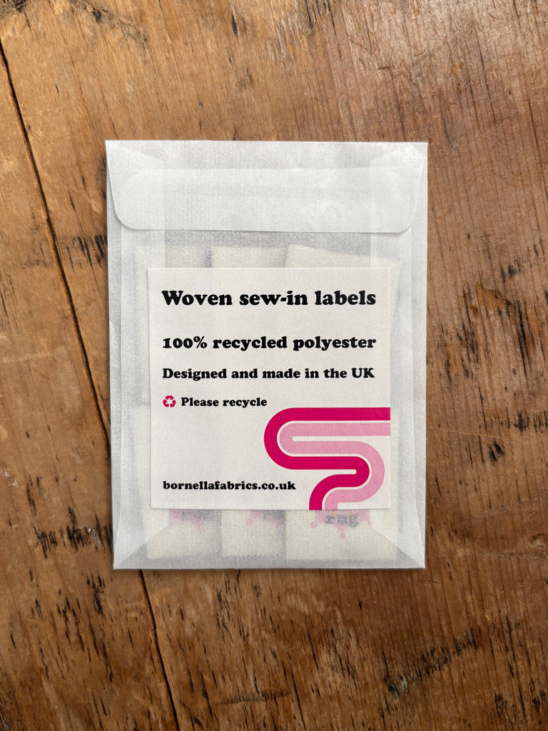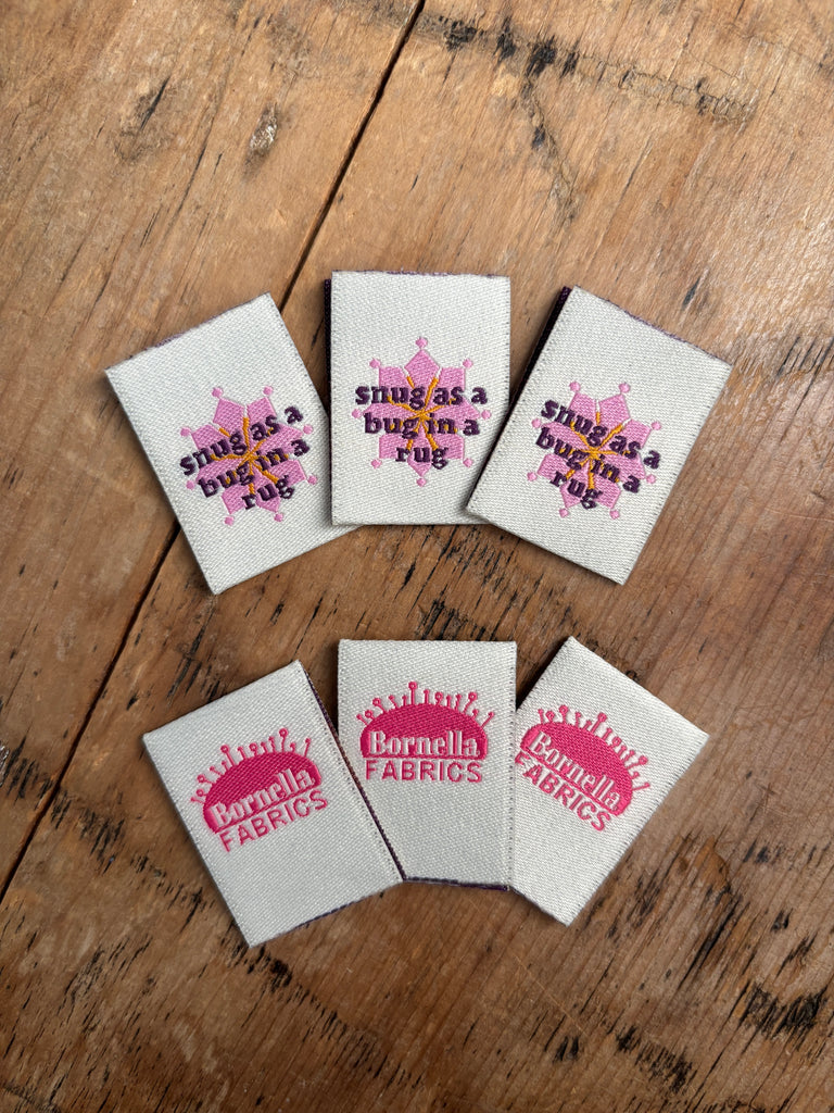 The labels are folded in half - the front features the design and the reverse has the Bornella Fabrics logo. The blank area at the top of the label is nice and big, so there's plenty of room to attach the label in your seam without it being too fiddly.