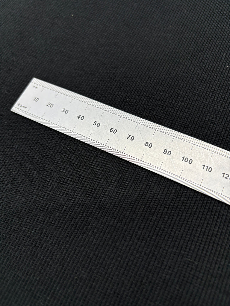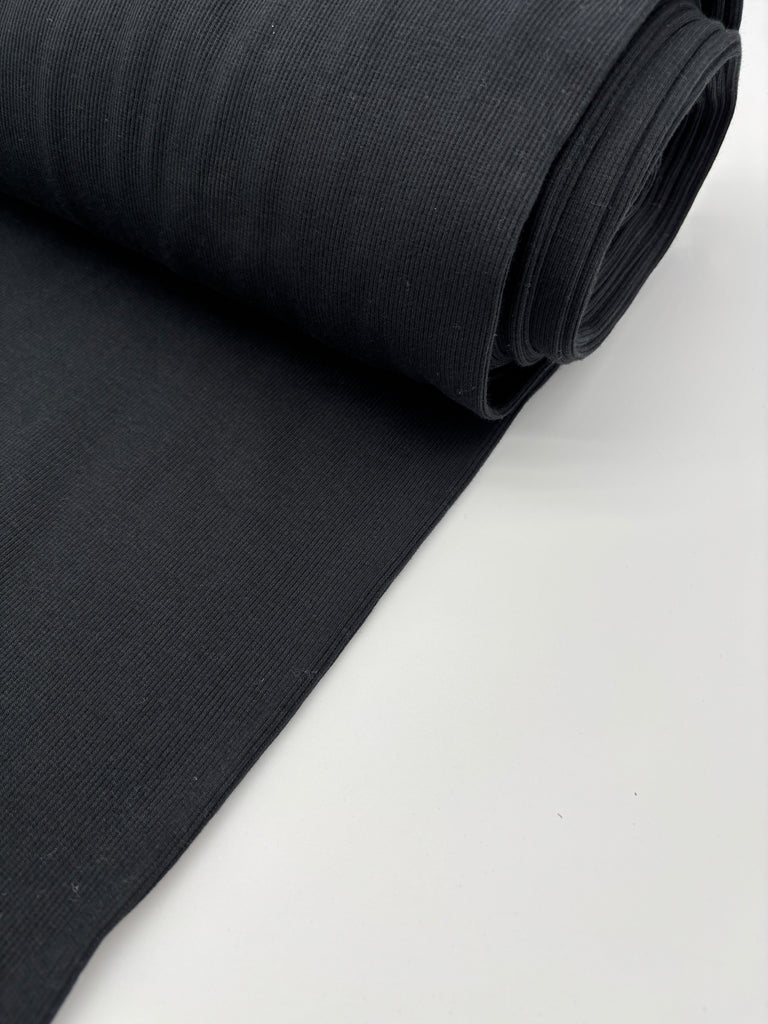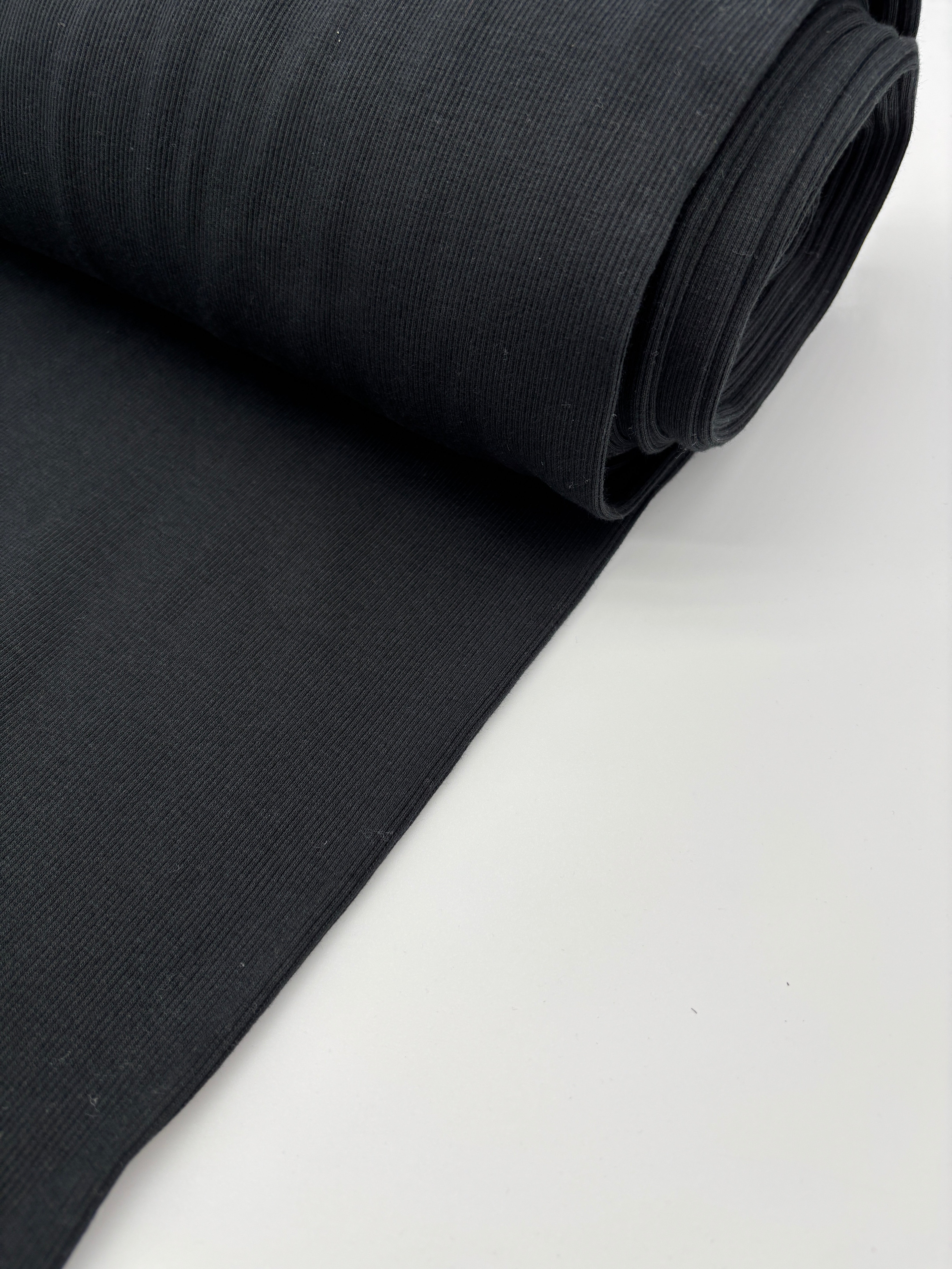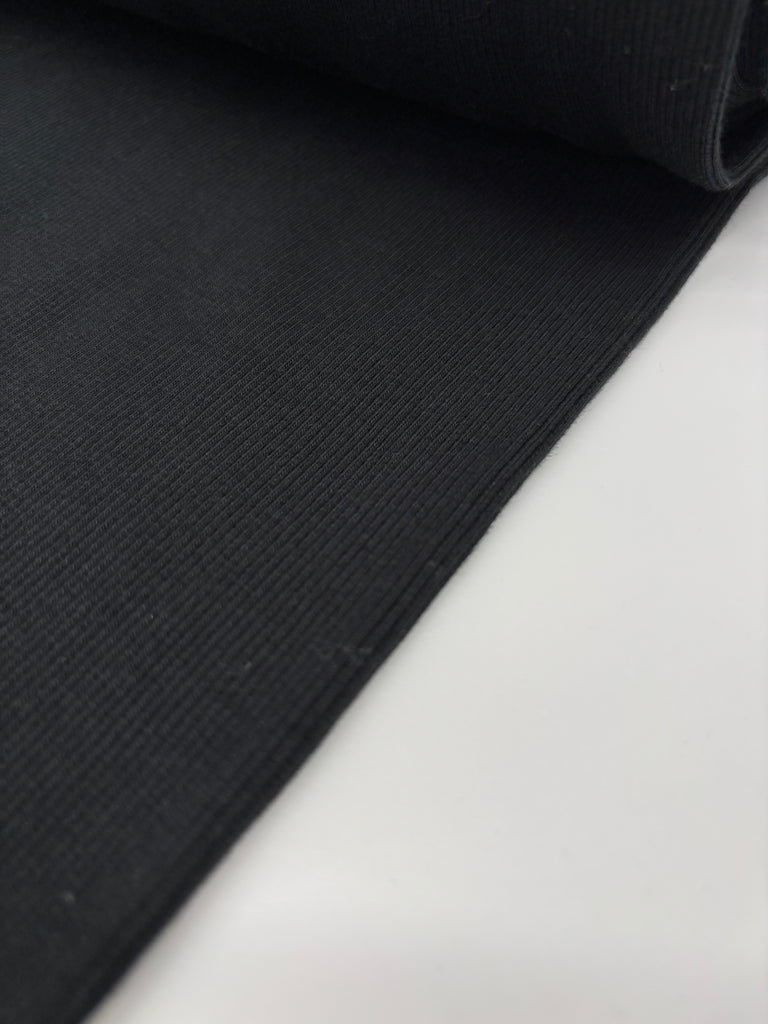 A classic tubular black ribbing which can be used for cuffs, necklines, waistbands and anywhere else that needs some extra stretch. The 2x2 ribbing means it has an obvious ridged texture running along the fabric.
