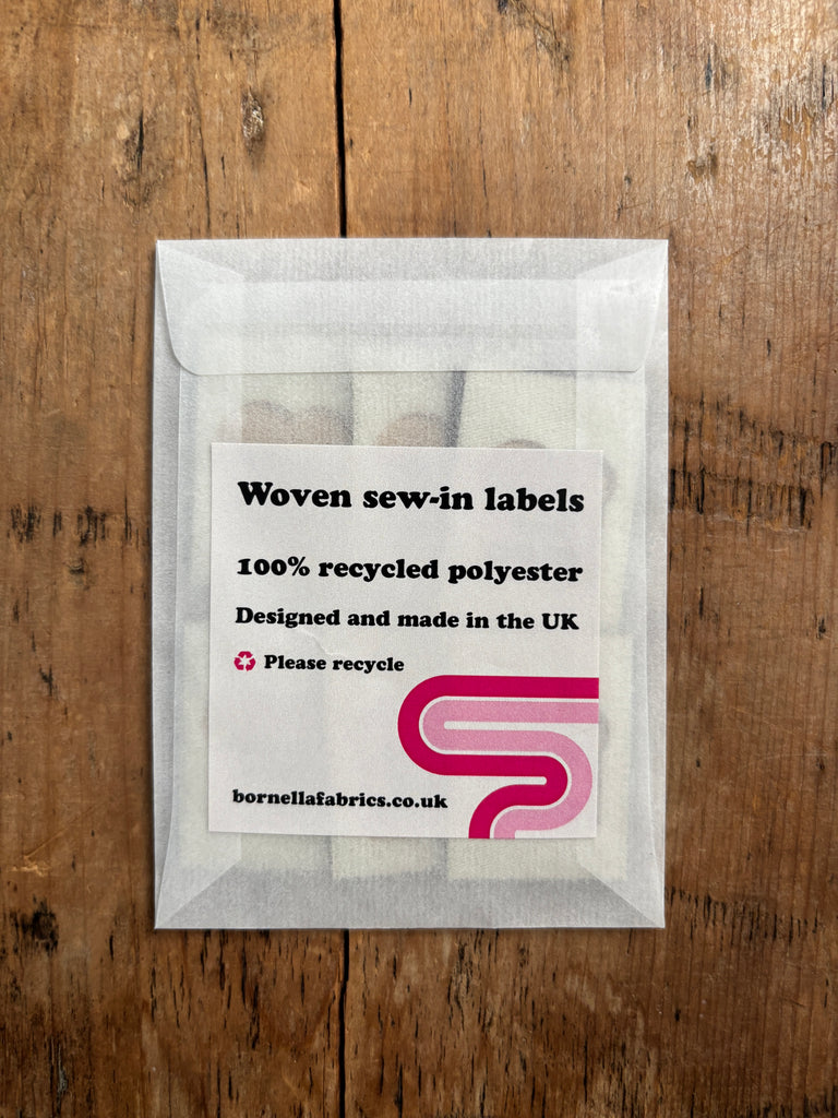 The labels are folded in half - the front features the design and the reverse has the Bornella Fabrics logo. The blank area at the top of the label is nice and big, so there's plenty of room to attach the label in your seam without it being too fiddly.